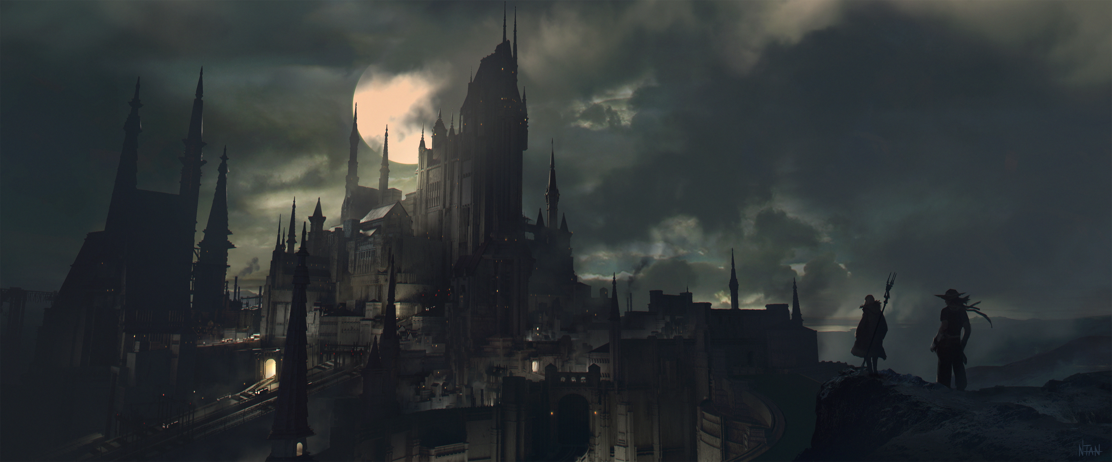 There were brief glimpses of the city from the game, so I had a lot of freedom to work with how the kingdom would look like. What I decided to go for was a large medieval town mixed with some fantasy elements and technology built into it. I felt like trams and industrial smokestacks would also bring out the NieR vibe.